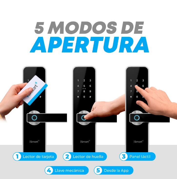 Convierte tu puerta en un acceso inteligente con una cerradura que lo hace todo: abre con huella, clave, tarjeta, app o llave, controla desde tu celular vía Bluetooth (con opción WiFi) y recibe notificaciones en tiempo real cada vez que alguien entra o sale. Administra hasta 200 huellas y 150 códigos (incluyendo temporales), protege con alarma y triple seguro, y olvídate de las pilas por meses (hasta 7–8 meses de duración, con USB de emergencia).